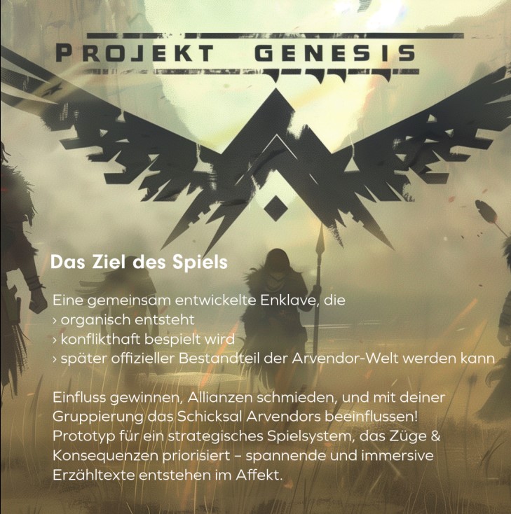 Besonders prägend ist der langfristige Ansatz von Projekt Genesis. Entscheidungen haben echte und dauerhafte Auswirkungen auf die Spielwelt. Erfolge, Fehltritte oder mutige Experimente wirken sich nicht nur auf die aktuelle Runde aus, sondern formen die Zukunft der Enklave nachhaltig. Damit richtet sich das Projekt vor allem an Spieler:innen, die Freude an Konsequenzen, Weltenbau und strategischem Denken haben.