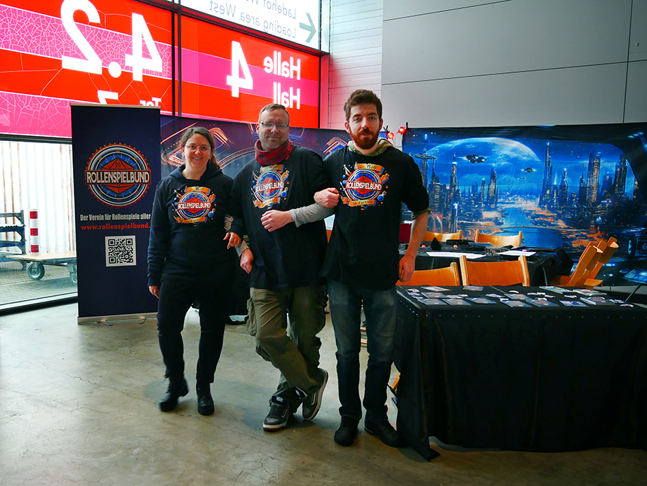Allen Herausforderungen zum Trotz standen am Samstagmorgen pünktlich und voller Vorfreude Elisabeth (1. Vorsitzende, bekannt als Lepakka), Dean (2. Vorsitzender, Philodox) und Jan (Vereinsfotograf, Xyanion) am Stand des Rollenspielbundes bereit – gespannt auf das, was kommen sollte.