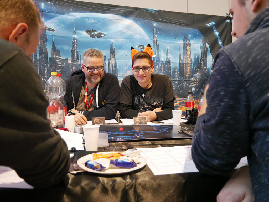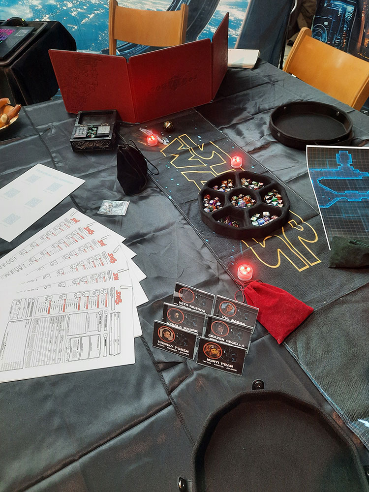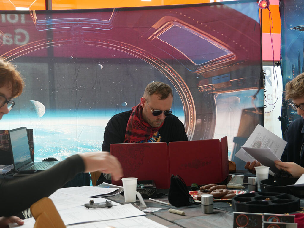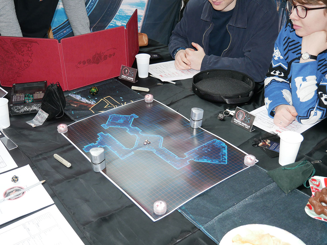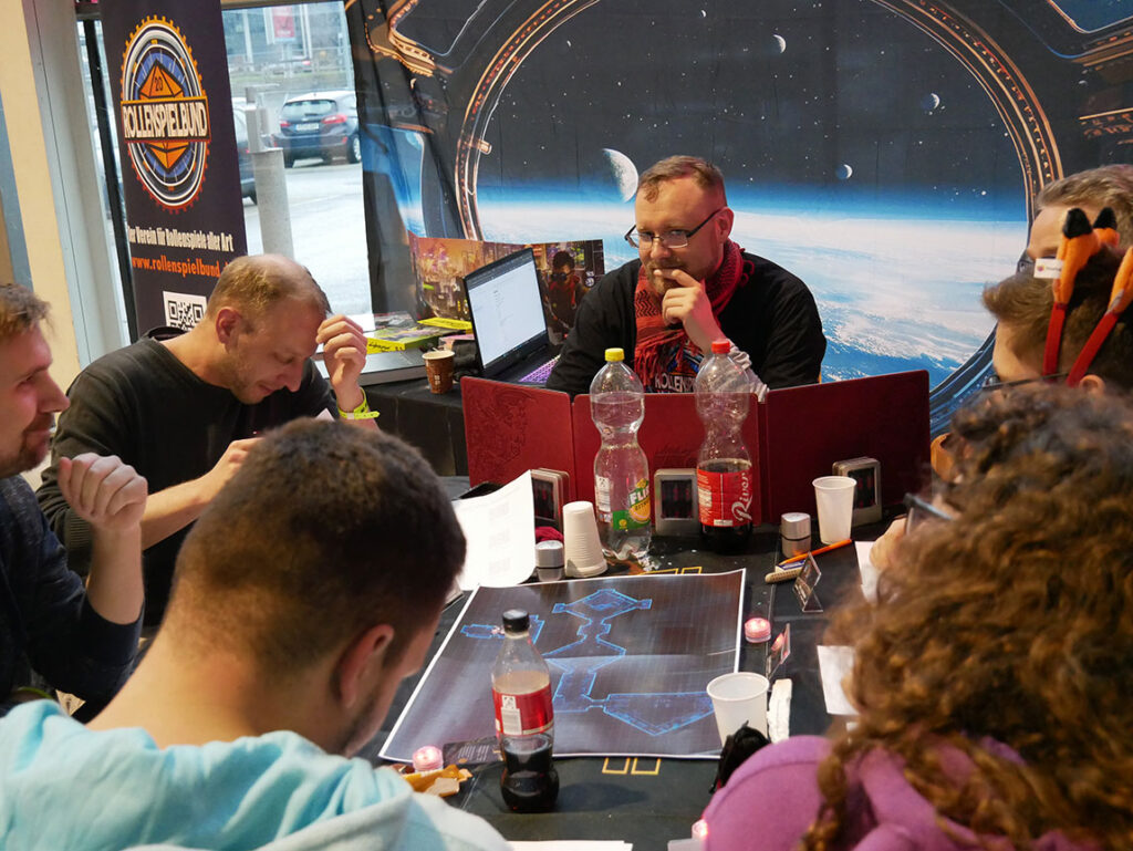Dean zeigte dabei eindrucksvoll, was gutes Spielleiten auch unter Con-Bedingungen leisten kann. Trotz Geräuschkulisse und Trubel entstanden lebendige Spielwelten, unterstützt durch Maps und Tokens, die echtes Pen & Paper-Feeling in eine eher untypische Umgebung brachten.
